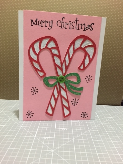 I went won't Cindis prompt and used an image from my Cricut as the focal image. I added some stardust stickles to the white part of the candy cane and added a green button to the center of the ribbon. TFL