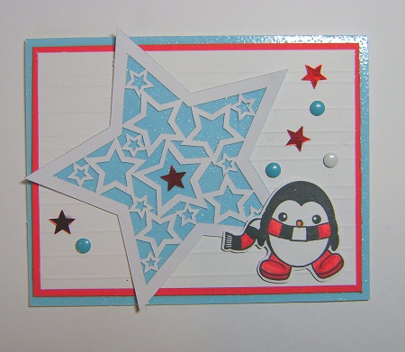 This is one cute card. Love that big star with the penguin in the corner. Great layout.
