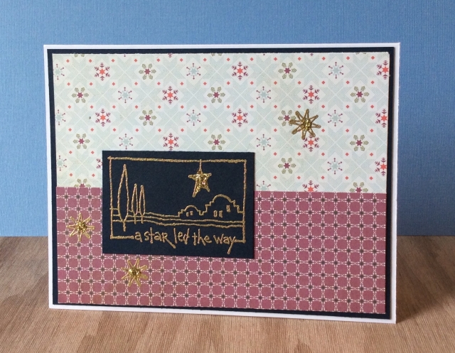 Beautiful image--I love it embossed in gold on black. The pp and the card design you chose work perfectly. I love the little HA star you embossed in gold; it adds a nice finishing touch. TFS. Daria