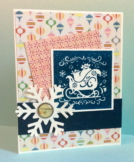 Patterned paper choices adds a great touch to this sleigh image. TFS