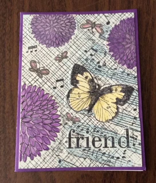 Very pretty! I really like the stamped and embossed portions. The watercoloring is very pretty, I especially like the very light blue around the music.