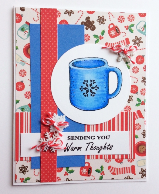 This card does have a little bit of Holly! I used the current Mojo Monday Sketch. The coffee mug is a plain stamp and I added the snowflake to it.