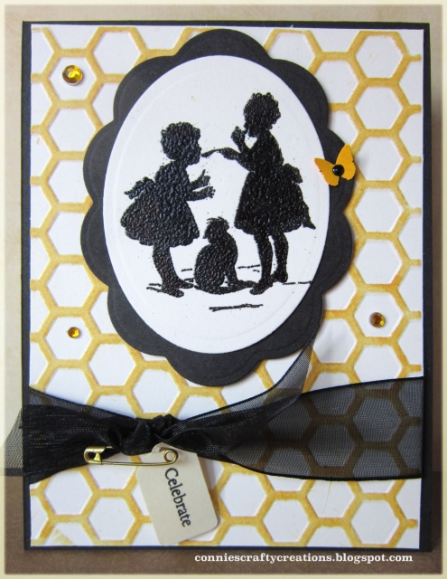 I did embossing in two ways, the dry for the background and wet embossing with the stamped image. rubbed my yellow ink over the embossed areas.