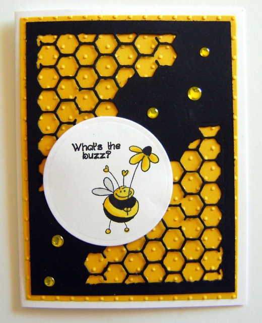 Here is my card for the BYW challenge. I found this really cute bee in my stash that I didn't know I had! I used my dotted swiss embossing folder on the yellow mat behind the black. I also used sparkle embossing powder on the bee's wings. It doesn't show in the picture.