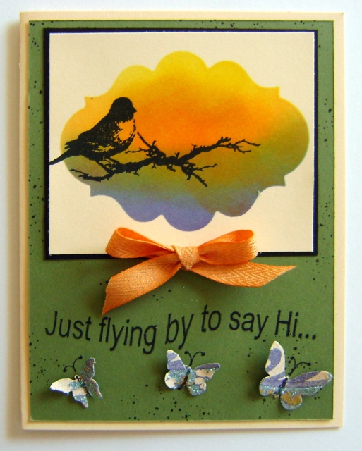 Here is my card for the 3 letters challenge. I used the letter B -- bird, butterflies and bow.