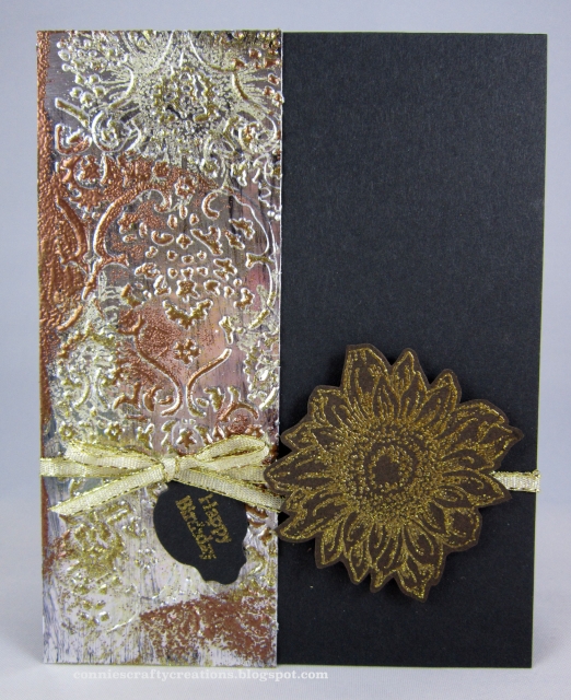 Hero Arts -- Sunflower stamp, embossed w/ Enchanted gold embossing powder on background and on brown cardstock and cut out
