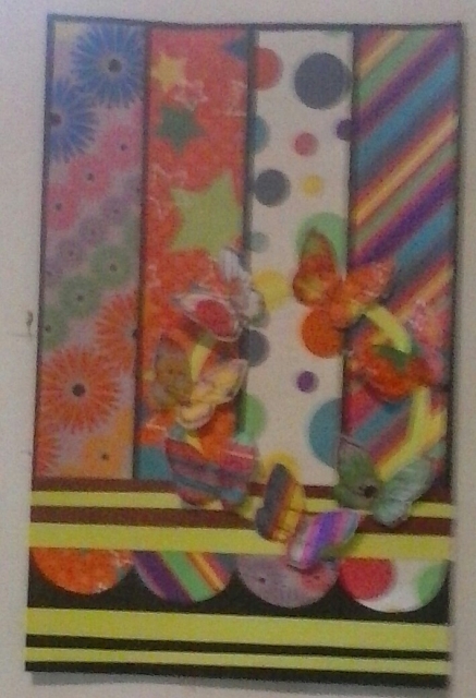 I went vibrant with color & pattern against a dark base. The butterfly stamp worked I think.