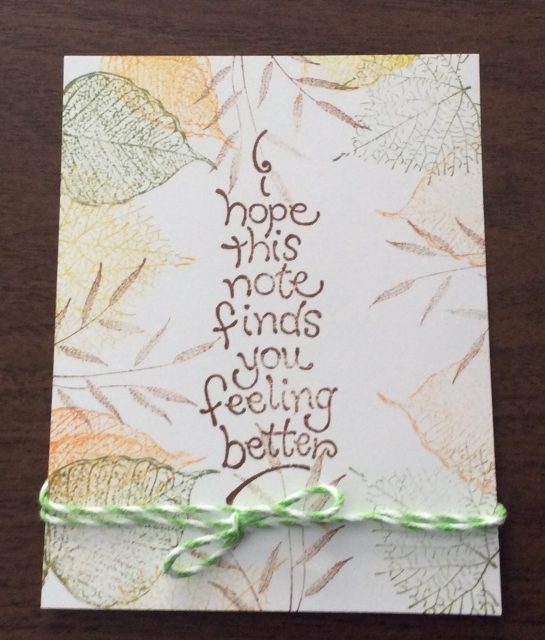 Wow, this is really pretty and soft! Goes well with the feel better message. Thanks for doing my challenge!