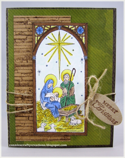 Northwoods Rubber stamps- Holy Family in Arched Rectangle, colored w/markers