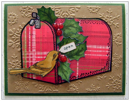 What a great way to present a gift card! I love your plaid mailbox and the glossy berries! The bird is a really cute way to let someone know there is a surprise inside.