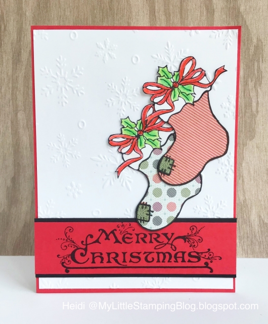 Love the papers you chose for the card especially the patterns for the stockings! The font used for the sentiment is also wonderful.