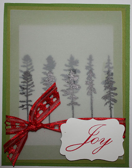 I used Creaking Trees and stamped on vellum and then restamped them on a slightly larger piece of vellum.