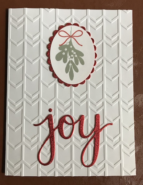 I have 3 of these made so far ... I stamped lots of mistletoe during Inktoberfest, but I'm still die cutting and adding Wink of Stella. The red paper is very shimmery, but a little light weight so I used Stick It to mount the shimmer paper to card stock, then die cut. It makes the sentiment stiffer too, so it is easy to apply to the card front with little dots of glue.