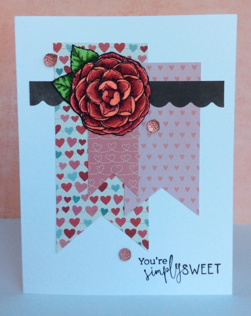 I used a power poppy image from Simply Camellias set and papers from Pebblles Yours Truly paper pad. I did add wink of stella on the flower and gems. Thanks for looking!