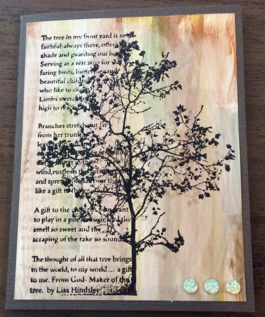 This turned out so well. I like how you added print to the left side of your bg and added the tree.