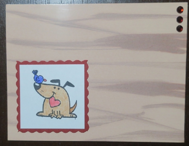 I used the scallop blade for my paper trimmer to cut the mat for the image. The dog image is by Craft Smart and I colored it with colored pencils.