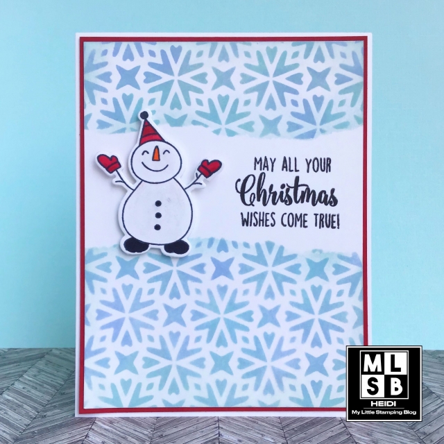 I did this card using my torn paper stenciling challenge and the Christmas in July Challenge.