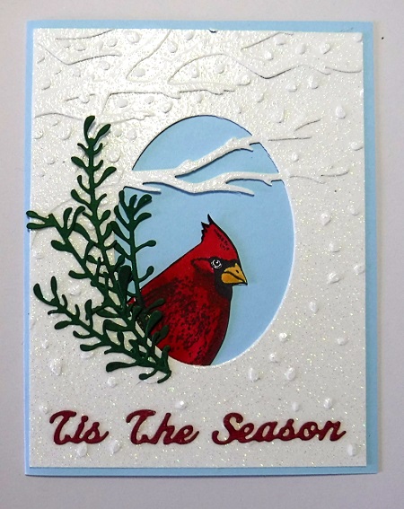 That's a great emboss & cut folder. It's a wonderful way to feature your classic cardinal. Beautiful card! Thanks for playing. Daria