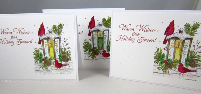 Northwoods Rubberstamps - Cardinal Snowy fence & lantern stamp set, Colored w/markers