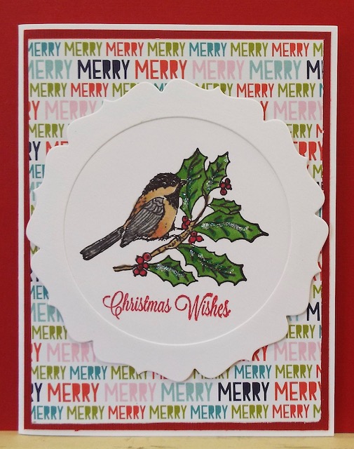 Stamped image, and colored with Copics. Applied stickies to leaves. Stamped image to Simon Says Stamp Circle then adhered circle to framed circle die - I.O. Die 001-Z. Adhered with foam tape to patterned paper, and matted to red CS, then white CB. Stamp: Great Impressions. TFL