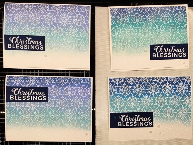 Heat embossed Hero Arts background with white. Sponged over top with several variations of distress oxide inks. The sentiment is on navy blue and that is from Simon Says Stamp. I decorated the inside a bit too, but it’s nothing fancy. There are some Nuvo drops on each as well.