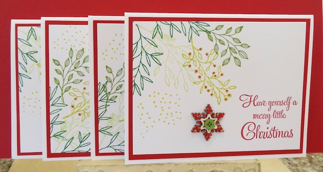 Here are four cards made using the Split 4 Stamping Technique by Creative Treehouse. This was on "LOLL"'s web site. All stamp images, including the quote, are from Rubbernecker. Matted to red CS, then to White CB. Embellished with the star I received as a RAK. TFL