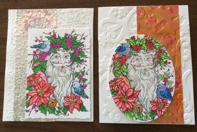 Isn’t this the loveliest Santa! Very pretty coloring. I”m glad you liked this idea. I like how your embossing turned out.