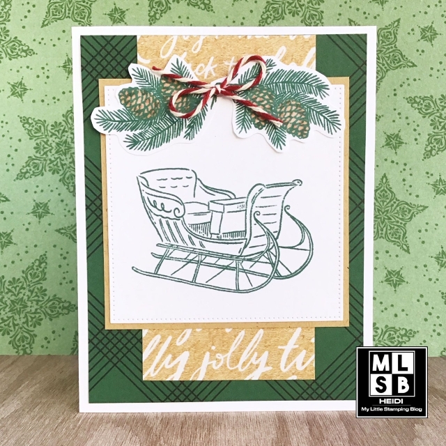 Very nice. The sleigh is a great image, and I like the bit of red and white Baker's twine on the pine cones and pine boughs. TFS. Daria