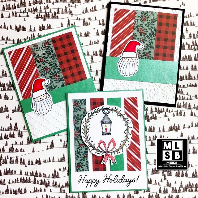 Really cute cards! I think I have that wreath ... Purple Onion? I like the way you loosely cut it out. The little embossed sections are nice on your Santa cards. Way to use your scraps!