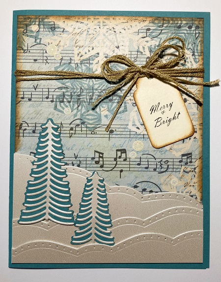 Paper by Paper Play. Tree dies are by Spellbinders. I just received them as a Fest RAK from Cindi! Thanks! Snowbanks were made by using a Spellbinders edge die.Tag die by Cuttlebug. Saying by Sparkle N Sprinkle.
