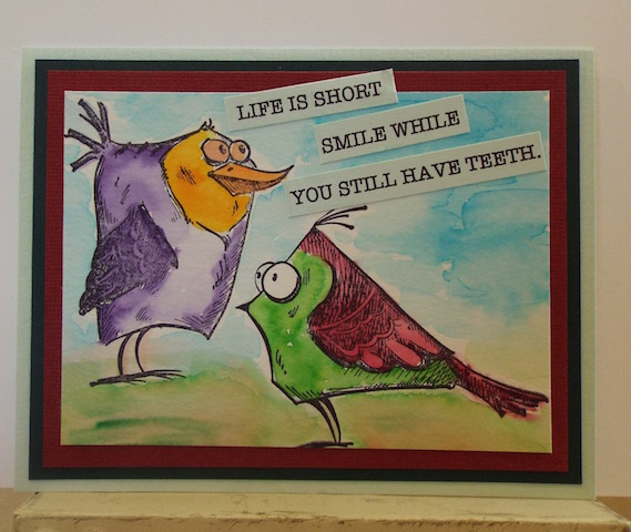 Think I had better slow down on posting anymore of these crazy bird cards, but I just love playing with them. I love this quote, and made it into a birthday card for a friend who has a good sense of humor - at least I hope so! LOL