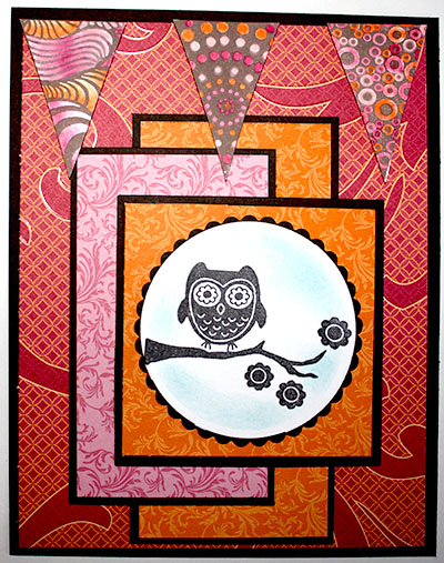 Cool layout. I love the bright colors. They are cute with that bright-eyed owl.