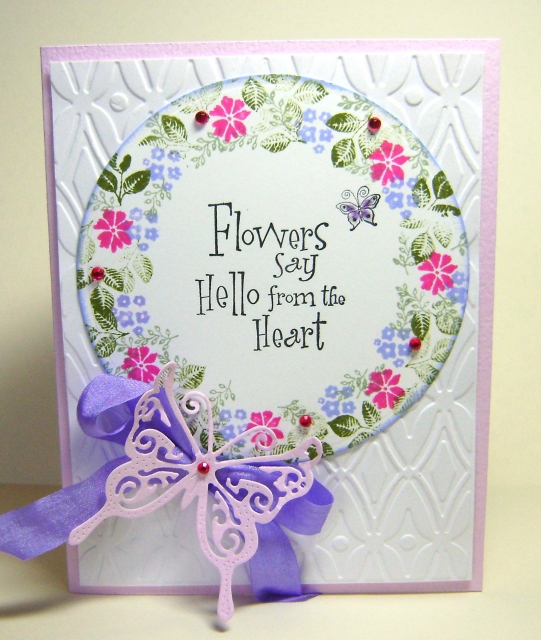 SO pretty! I love these tiny stamps and especially these sweet flowers you used here. The butterfly is cute too! The butterfly over the bow is perfect!