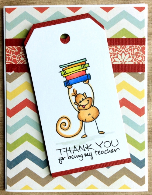 Supplies: Stampendous School for Changito stamp set, Versafine and Memento Black inks, Spectrum Noir alcohol markers, Tim Holtz tag dies, My Mind's Eye Summer Fresh 6x6 paper pad, other cardstocks from my stash.