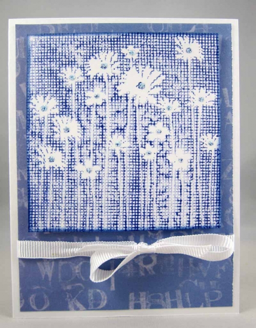 I stamped the other card and this image was still left on my background stamp so I just put a plain piece of card stock over it and rubbed the back to get this imprint