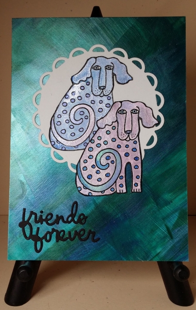 I recently discovered that a friend of mine loves Laurel Burch artwork. She had a lovely Laurel Burch tote bag. I have two Laurel Burch stamps so I decided to use one to make her birthday card this year. I was going to go pretty much with the color scheme I saw online—rusts and oranges, but when I pulled out my Twinkling H2Os, I picked out other colors. I was going to stamp one image and create a simple background, but my painting went out of the lines so I needed to fussy cut the image. I ended up making a card that is similar to the one Fran Seifert posted on the Stampendous website. Thank you, Fran for the inspiration. You can see Fran’s card here: https://www.stampendous.com/projects/stamps/laurel-burch%E2%84%A2-dog-tail-pair-by-fran-seiford/