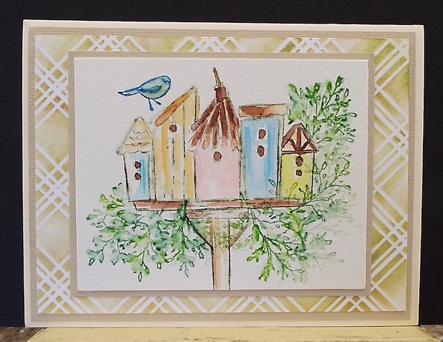 Playing with this Art Impressions Image, I came up with this card. Stamped and watercolored image, and adhered to stenciled piece I made some time ago for the BG. Used light brown CS to mat pieces, then adhered to Cream card base. TFL