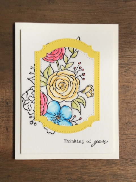Mine is pretty simple, but it will be used as a sympathy card, so I left it alone. Stamped image with Versafine onyx black and embossed with clear embossing powder on watercolor paper. I watercolored using Tombow markers. Front panel mounted to Neenah Natural white card with foam tape.