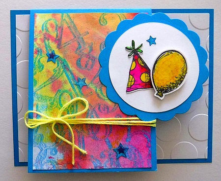 I love your colorful background and images! Great choice for the embossing folder on the white layer. Thanks for teaching us this card!