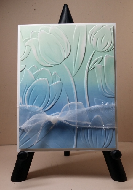 I tried to do the technique that Jennifer McGuire showed recently. I used backgrounds that I had already inked, embossed the inked cardstock, and sanded the raised design with a sanding block I had to use on Shrink Plastic.