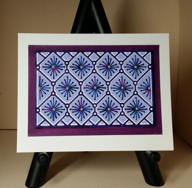 I tried to edit the original post, but I couldn't change the photo of the card. I chose the mat for that card in the middle of the night. I thought it matched the fuchsia in the thread; it didn't. Also, the focal piece sat a bit crookedly on the card base.