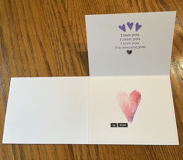 Heart stamp is Hero Arts Sketched Heart. It is solid but textured. I inked it with the Kaleidacolor pad I'd been using and added a little Wilted Violet to one edge, then misted. I was really happy with how it turned out. I don't know if I've used this stamp before. I need to play with it some more!