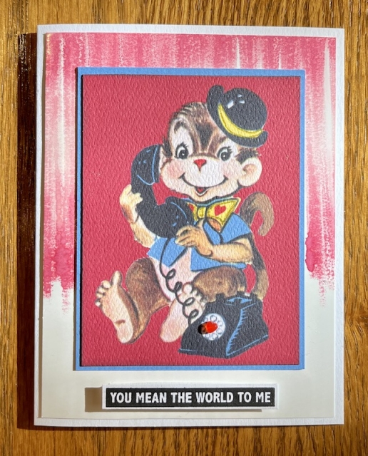I've been making some quick-ish Valentines using Authentique paper. It's a 12x12 sheet of 3x4 inch designs that I am cutting up. I bought some coordinating paper too. On this one I used the bouncing brayer background I made in Zoom last week.