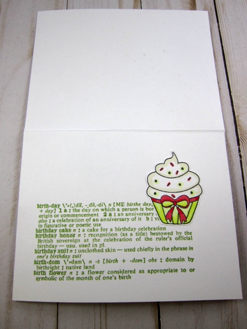 Goes great with the card front. I like how the confetti is on the sentiment circle and here on the cupcake.