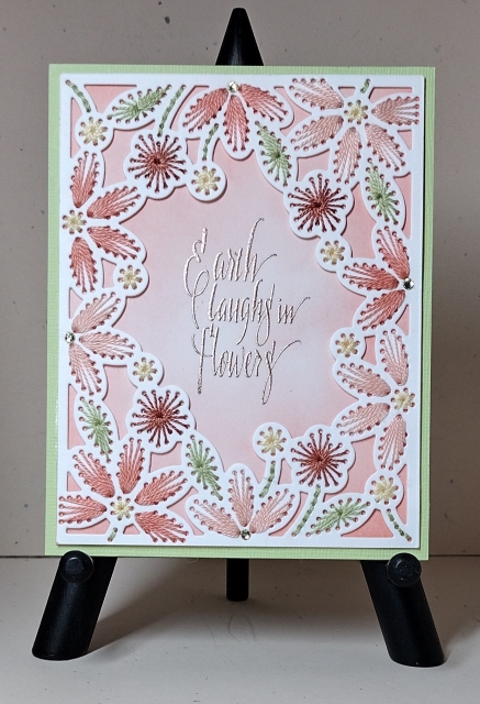 This is the first time I’ve stitched a panel using this die. Nora sent me a card she’d made using it, and I had it by my side when I stitched this one. That was an immense help. Thank you, Nora. I am so happy with the way this turned out.