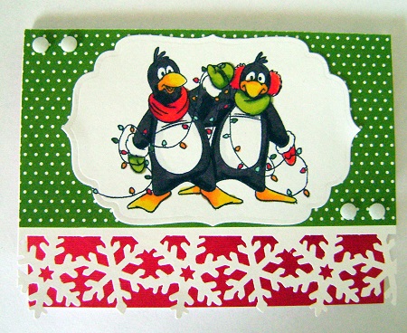 I love that image! So cute and you colored it up wonderfully! Love the pattern paper and snowflake border!