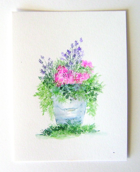 I was at the stamp show last weekend and saw the demo on how to watercolor at Art Impressions. I have been wanting to try their technique all week! I was happy to be able to try it for your color challenge! I stamped the bucket, greenery and flowers and then used a water pen over them. Thanks a bunch.