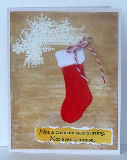 The stocking is colored with flocking to add some soft touchable texture. And the sentiment's edges are torn to add interest.