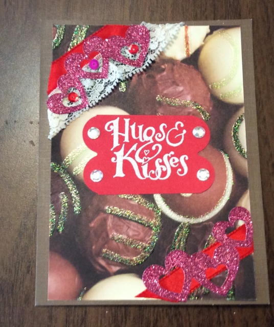 I used this great pp of candy, added lace, stickers, sequins, and rhinestones. And stamped and emb some words.