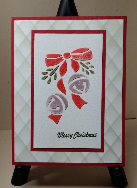 Kaleidacolor Ink Pads – The red is a mixture of the darkest colors in the Tomato Vine and Desert Pink pads. The bells are colored with a mixture of a lavender and a grayish color.